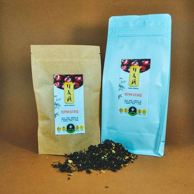 Состав: Черный индийский чай, ягоды вишни, цедра лимона, мелисса, с ароматом вишни и молока