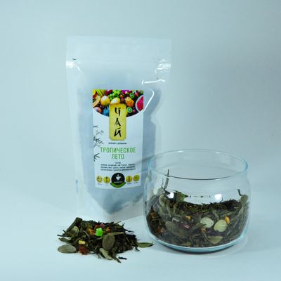 Состав: Зеленый китайский чай "Сенча", гибискус, брусника лист, цукаты, кожура шиповника, кусочки яблока, с ароматом личи