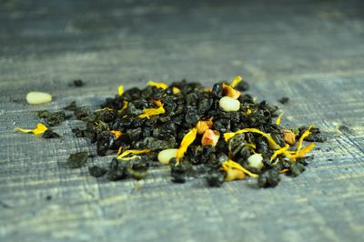 Состав: Зеленый китайский чай "Ганпаудер", кедровый орех, календула, яблоко, с ароматом печенья и лесного ореха