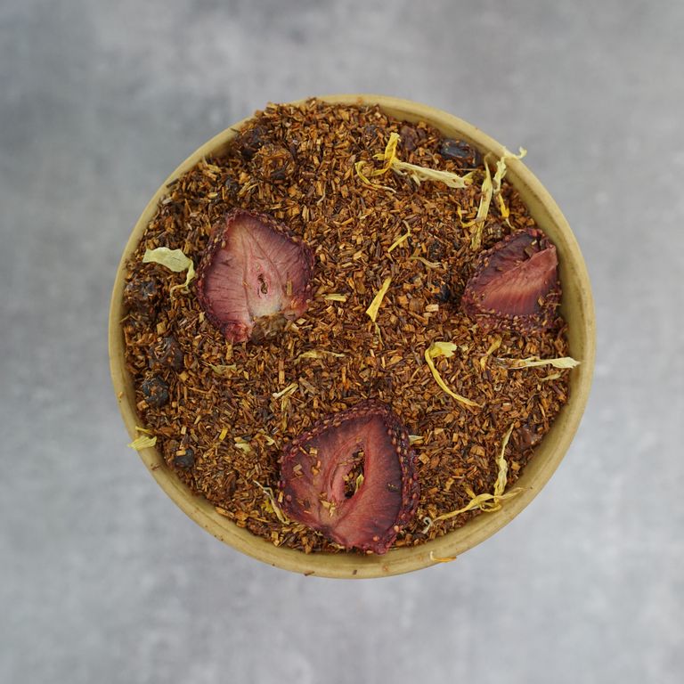 Состав: Ройбуш, рябина красная, клубника слайсы, календула, ароматизатор